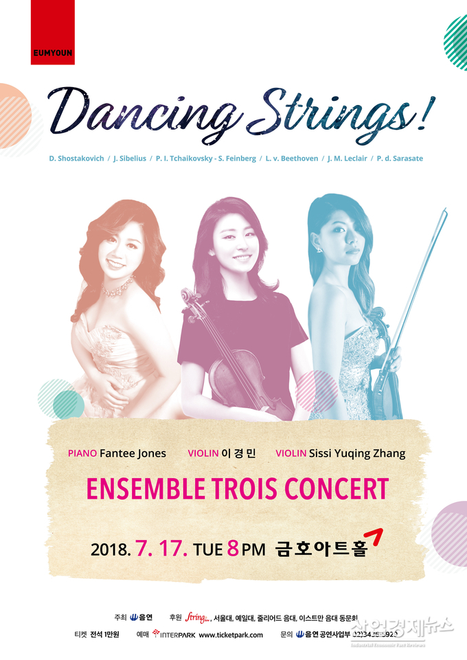 [산업경제뉴스 박진경 기자] 바이올리니스트 이경민, 피아니스트 Fantee Jones, 바이올리니스트 Sissi Yuqing Zhang으로 이루어진 앙상블 트루아(Ensemble Trois)가 7월 17일 오후 8시 금호아트홀에서 공연을 펼친다.
