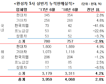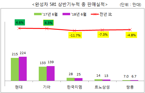 이들 5사의 상반기 총판매량은 406만 8천대로 전년 대비 2.8% 증가해 업계에서는 하반기에도 성장 전망에 기대를 걸고 있다.