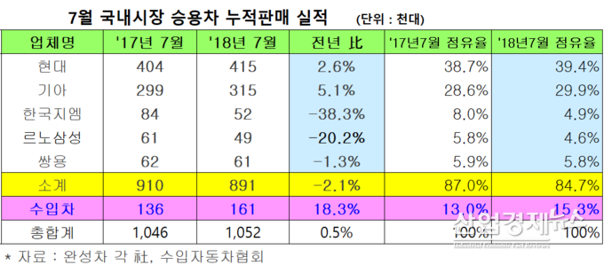수입차의 판매확대는 국내시장 점유율에도 크게 기여했다. 7월말 누적기준 점유율은 지난해 같은 기간 보다 2.3%p나 뛰어오른 15.3%를 기록하며 소비자 사랑을 재 확인시켜 줬다.