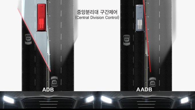 이 램프는, 항상 상향등 상태를 유지해 운전자의 시야 확보를 도우면서 동시에 상향등의 불빛을 전방 차량 부분만 차단해 앞차 운전자의 눈부심을 막는 기술로, 그간 일부 프리미엄 차에만 적용돼 있다.
