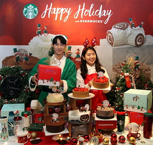 스타벅스는 ‘딸기 쿠키 치즈’, ‘쿠앤크 카라멜’, ‘크리스마스 리스 파운드’, ‘7 레이어 가나슈’, ‘크리스마스 부쉬 드 노엘’과 하겐다즈가 스타벅스 전용으로 제작한 ‘크리스마스 아이스크림 케이크’ 등 케이크 6종을 출시하고 오는 17일까지 예약 주문을 통한 판매에 나섰다.