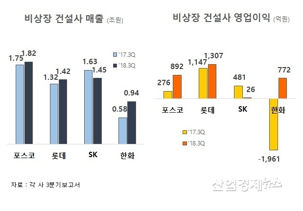 국내주택사업 비중이 큰 롯데건설은 꾸준히 안정세를 보였고, 해외사업이 많았던 포스코건설과 한화건설은 해외부문의 손실이 줄어들면서 이익이 큰 폭으로 증가하는 모습을 보였다. 반면 해외플랜트의 강자 SK건설은 해외토목부문에서 대손상각비용이 커지면서 이익이 크게 축소됐다.