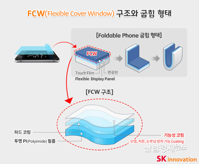 [산업경제뉴스 강민구 기자] SK이노베이션(대표이사: 김준)이 차세대 휴대용 제품으로 부상하고 있는 플랙서블 디스플레이(Flexible Display, 휘어지거나 접어지는 디스플레이)의 핵심 소재인 FCW(Flexible Cover Window)를 개발하고, 내년 1월 8일부터 미국 라스베이거스에서 개최되는 ‘CES 2019’에서 핵심소재인 선보인다고 밝혔다.