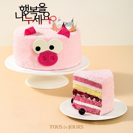 분홍색 돼지 캐릭터를 형상화한 ‘행복하면 돼지’는 귀여운 외관으로 눈길부터 사로잡는다. 부드러운 시트 사이에 딸기맛 생크림과 딸기, 블루베리, 크랜베리를 넣어 달콤·상큼한 맛을 느낄 수 있다.