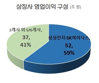 2개 회사를 제외한 나머지 576개사의 영업이익 합계는 37조원으로 41%에 불과하다.
