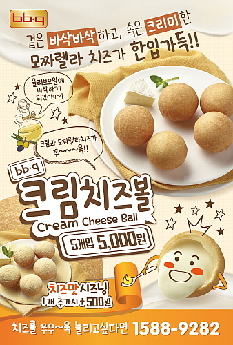 함께 선보인 ‘BBQ 크림치즈볼’은 올리브오일로 바삭하게 튀긴 크림모짜렐라 치즈볼로 치킨과 함께 곁들이기 좋은 메뉴로, 부드럽고 달콤한 맛뿐만 아니라 쫄깃하게 늘어나는 치즈의 식감은 아이들 간식이나 야식 메뉴로도 제격이라고 업체 측은 전했다.