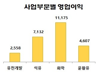 윤활유사업부문도 4607억원의 영업이익을 실현했고, 유전개발 부문도 2558억원의 영업이익을 기록했다.