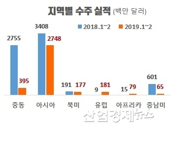 최근 실적이 늘고 있는 아시아 지역의 수주가 올해도 27억4800만 달러를 기록해 그나마 전체 수주를 떠받치고 있는 모양새다.