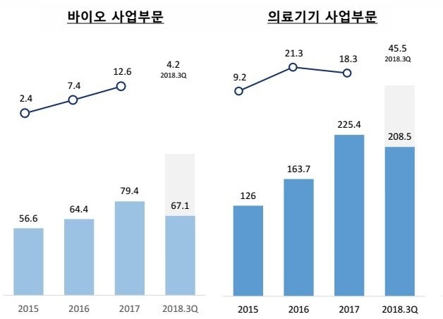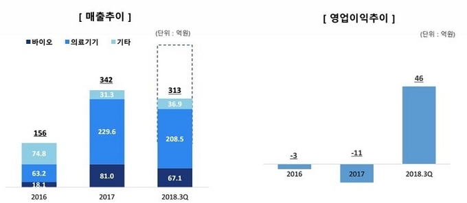 매출액은 전년대비 29.95% 증가한 실적이며 영업이익은 2017년 11억원 적자에서 흑자로 전환하는데 성공했다.