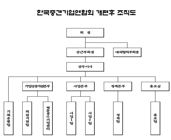[산업경제뉴스 최기훈 기자] 한국중견기업연합회(이하 중견련)는 강호갑 제10대 회장 취임을 맞아 3월 1일자로 조직 개편과 인사를 단행했다.