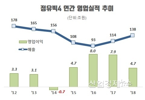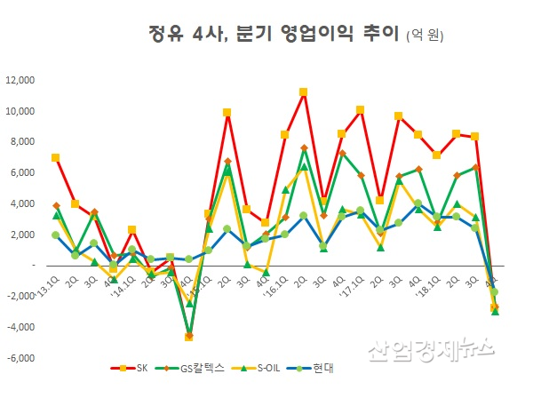 그리고 2018년 4분기 정제마진이 1달러 대까지 떨어지자 4회사가 모두 대규모 적자로 전환됐다.
