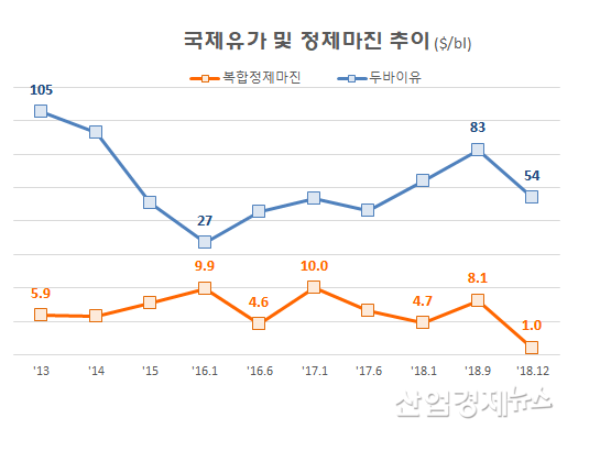 ■ 2019년...유가는 상승, 정제마진은 오르락내리락