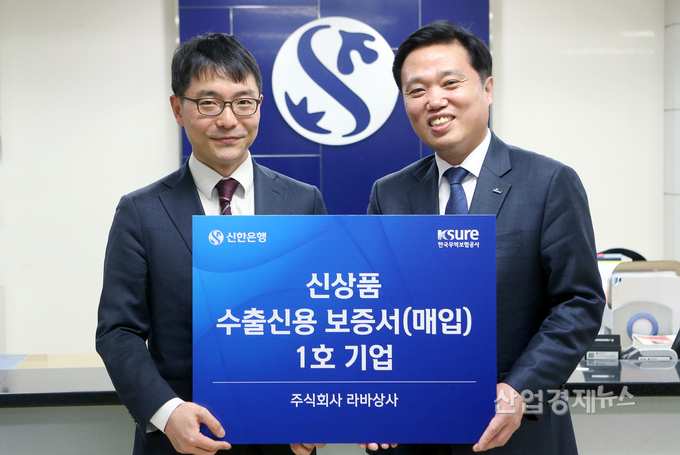 신한은행은 이 상품이 은행권 최초출시 됐다며 한국무역보험공사를 통해 수출신용보증(매입) 보증서 1호 발급받은 라바상사와 수출거래 약정을 체결했다.