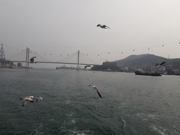 바순 음 같은 뱃고동 소리를 들으며 출항한 지 10여 분, 시야에서 제법 멀어진 오동도에서 날아온 동백 꽃잎 한 장이 파도에 살포시 내려앉아 넘실거리는가 싶었다.