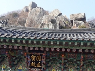 커다란 바위 두 개가 부딪혀 형성된 틈 사이를 통과하면 대웅전, 관음전 같은 절집이 몇 채 나오는데 도저히 공간이 없어보이는 산 꼭대기에 터를 잡은 가람 배치가 절묘했다.