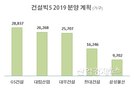 업계에 따르면 올해 건설사들의 분양계획은 GS건설 외에도 대림산업이 2만6268 가구, 대우건설이 2만5707 가구, 현대건설이 1만6246 가구, 삼성물산이 9702 가구 등으로 조사됐다.