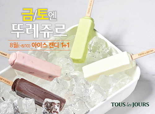 CJ푸드빌 뚜레쥬르는 ‘금토엔 뚜레쥬르’ 이벤트를 8월에도 이어간다. 그 일환으로 첫 주와 둘째 주 ‘금·토요일(총 4일)에 한해 아이스캔디 1+1 혜택을 제공한다.