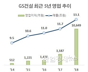 GS건설은 지난해에 분기마다 매출 3조원, 영업이익 2000억원을 넘어섰지만 이전 년도에는 매출은 2조원대에 머물렀고 영업이익도 1000억원을 밑돌았다.