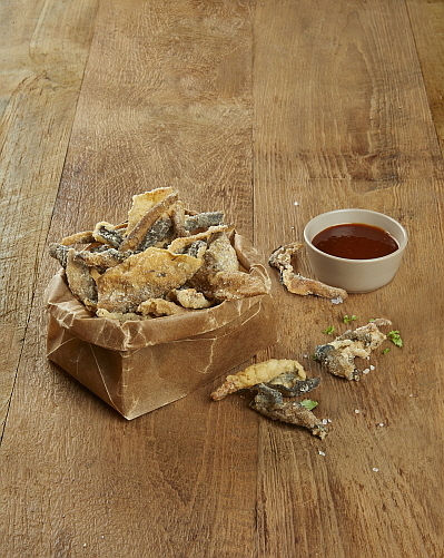매콤하고 새콤한 할라피뇨 치폴레 소스가 함께 제공돼 명태껍데기의 쌉쌀한 맛을 잡아준다는 것이 업체 측 소개의 변이다.