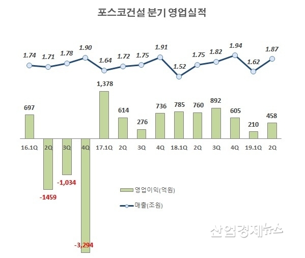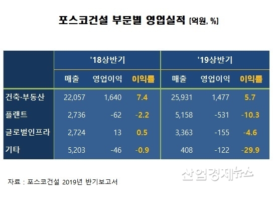 포스코건설이 시장에 공시한 2019년 상반기보고서에 따르면 포스코건설은 올해 상반기에 매출 3조4861억원, 영업이익 668억원, 당기순이익 473억원을 실현했다.