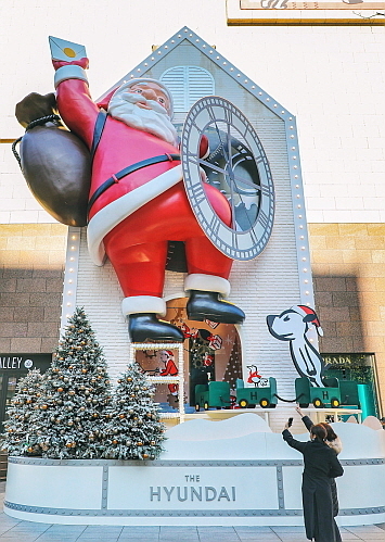 현대백화점은 연말을 앞두고 무역센터점 정문에 약 15m 높이에다 전세계 어린이들에게 선물을 배달하는 산타클로스를 콘셉트로 한 대형 크리스마스 조형물을 일찌감치 전시하고 연말 분위기 연출에 나섰다.