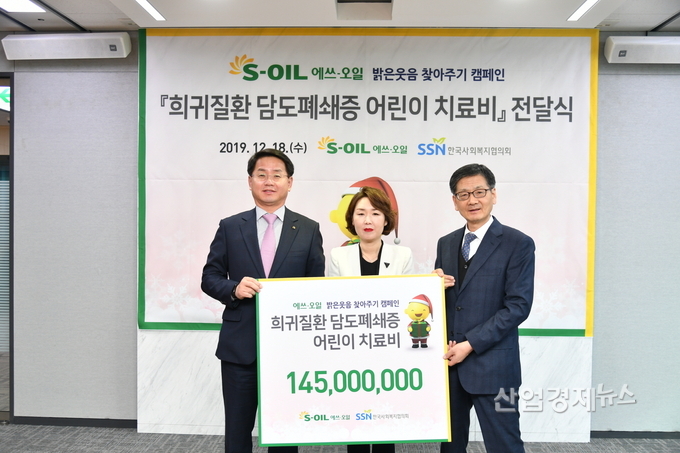 [산업경제뉴스 박진경 기자] S-OIL (대표 후세인 알 카타니)은 18일 서울 마포 본사에서 저소득가정 담도폐쇄증 어린이 치료비 1억 4천5백만원을 한국사회복지협의회에 전달했다. 이 기부금은 S-OIL 임직원 1천 800여 명이 매월 급여에서 1만원 미만의 우수리를 모아 조성한 기금이다.