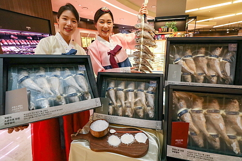 한우와 함께 대표 명절 선물로 꼽히는 굴비도 프리미엄 선물세트로 차별화한다. 지난 추석 600세트 한정 물량으로 선보인 특화 소금 굴비(자염·죽염·해양심층수 등 전통소금 3종, 프랑스 게랑드 소금으로 밑간 한 굴비)를 올해 1200세트로 늘려 선보인다.