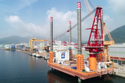 [엔트로피타임즈 강민구 기자] 국내 최초의 해상풍력 전용 설치선 ‘현대프론티어호’가 정부 국책과제로 선정된 지 6년 만에 1만 4000톤급 초대형 선박의 위용을 갖추고 출항에 나섰다. 현대스틸산업은 13일(화) 경남 통영 앞바다에서 현대프론티어호 출항식을 개최했다. 이날 행사는 현대스틸산업 이청휴 대표이사, 현대건설 이우호 전무를 비롯해 산업통상자원부 천영길 에너지산업실장, 경남도 김병규 경제부지사, 한국에너지기술평가원 권기영 원장 등 각계 주요인사가 참석한 가운데 진행됐다. 1만 4000톤 규모의 초대형 해상풍력 전용 설치선 ‘현대프론티어호’는 길이 85m, 폭 41m, 높이 6.5m로 바다 위에서 해상풍력 터빈을 인양, 운반, 설치까지 한 번에 가능한 국내 최초이자 유일의 해상풍력 전용 설치선이다. 현대프론티어호는 유속과 파고의 영향이 큰 해상에서 정확한 위치를 유지하는 다이나믹 포지션 시스템(Dynamic Position System), 수면 위로 선체를 들어올려 고정시키는 재킹 시스템(Jacking System) 등을 갖춰 모든 해저지형에서 작업이 가능하다. 또한 1200톤의 선박 일체형 크레인을 탑재해 10㎿ 규모의 고성능 터빈을 설치할 수 있으며,