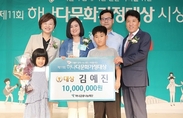[산업경제뉴스 김명인 기자] 하나금융나눔재단은 지난 2일 하나금융그룹 명동사옥 대강당에서 '제11회 하나다문화가정대상' 시상식을 개최했다고 3일 밝혔다. 이 시상식은 다문화가정에 대한 관심 제고와 복지 증진을 통해 사회 통합 구현에 기여하고자 국내 최초로 지난 2009년부터 시작해 올해로 11회째를 맞는 전국 규모의 전통 있는 시상식으로 여성가족부가 후원한다. 수상자는 지난 4월에 공모를 통해 선발된 후보들에 대해 3개월 간의 전문가 심사 및 현지 실사를 거쳐 최종 선정됐다. 이 날 시상식에는 함영주 하나금융나눔재단 이사장, 진선미 여성가족부 장관, 우딴신 주한 미얀마 대사, 키란 사켜 주한네팔 대리대사, 응우엔 부 뚜 주한베트남 대사, 김인순 해밀학교 이사장 등이 참석해 총 12명의 개인과 3개의 단체를 시상하고 격려했다. 어려움을 극복하고 화목한 가정을 이룬 모범적인 결혼이주여성에게는 행복가정상과 희망가정상이, 다문화가정을 위해 노력한 개인 및 단체에는 행복도움상이 수여되었다. 영예의 대상인 여성가족부장관상은 네팔 출신 결혼이주여성으로 경남 함양에 거주 중인 결혼 13년차 주부 김예진 씨가 수상했다. 김씨는 결혼 초기 남편의 무뚝뚝함과 딸 아이의 장애(지