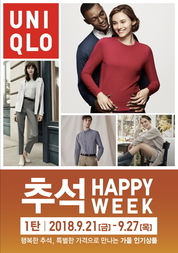 [산업경제뉴스 김명인 기자] 패션 브랜드 유니클로가 추석 연휴를 맞아 21일부터 30일까지 가을 인기 상품을 최대 2만원 할인된 가격에 만나볼 수 있는 ‘해피 위크(HAPPY WEEK)’ 프로모션을 진행한다. 유니클로는추석을 앞두고, 지금 입기에도 좋은 가을 아이템들을 특별한 가격에 제공한다고 21일 밝혔다. 10일간 진행되는 이 프로모션은 2회(21~27일, 28~30일)에 걸쳐 할인 품목을 달리해 더욱 풍성한 혜택을 제공한다. 27일까지 진행되는 1탄에서는엑스트라 화인 메리노 상품을 특별가에 선보인다. EFM 니트는 최고급 양모의 일종인 메리노 울 100%로 만들어져 유니클로의 대표 가을 아이템 중 하나다. 여성용 EFM 가디건과 스웨터는 각 1만원 할인된 2만9900원과 1만9900원에, 남성용 EFM 가디건과 스웨터, 베스트도 각 1만원 할인된3만9900원, 2만9900원, 1만9900원에 판매한다. 단정하게 연출할 수 있는 패션 아이템 중에서는 허리 밴드로 편안한 ‘EZY 앵클 팬츠’를 정상가 대비 1만원 낮은 2만9900원으로 남성용 12일까지,여성용은 27일까지 할인을 적용된다. ‘엑스트라 화인 코튼 셔츠’도 1만원 할인된 1만9900원에,