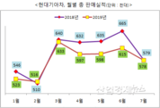 [산업경제뉴스 김소산 기자] 현대자동차와 기아자동차의 해외시장 판매부진이 좀처럼 회복기미를 보이지 않고 있다. 현대·기아차는 지난달 실적발표를 하면서 국내외 합산 총판매량은 57만8370대로 이는 전년 동월보다 0.1% 줄었다고밝혔다. 업체별로는 현대차가 7월 전 세계 시장에서 총 35만2468대를, 기아차는 22만5902대를 판매한 것으로 나타났다. 시장별로는 국내시장에서 현대차가 6만286대, 기아차 4만7080대를 팔아 현대차는 전년 동월 대비 0.1% 줄어든 반면, 기아차는 반대로0.2% 늘었다. 두 회사의 국내 합산실적은 10만7366대로 전년 동월 수준의 실적을 기록했다. 해외시장에서는 현대차가 29만2182대를 팔아 2.0% 증가한 반면, 기아차는 17만8822대로 3.4% 줄어 내수시장에서 2% 성장과는 상반된 결과를 보여줬다. 지난달 역시 두 회사의 실적부진은 해외부분이 주도한 것으로 나타났다. 현대·기아차의 7월까지 국내외 합산 누적판매량은 406만대로 지난해 같은 기간 보다 -3.5%, 15만대 줄어든 수치를 시장에 내놨다. 이 수치는 같은 기간 해외부문의 판매 감소량과 동일해 해외 부진이 실적하락을 주도하고 있음을 나타냈다. ■ 해외부문
