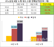 [산업경제뉴스 김소산 기자] 르노삼성자동차의 판매량이 내수와 수출 가릴 것 없이 폭락세를 이어가고 있어 고민이 깊어지고 있다. 르노삼성은 3일, 4월 판매실적을 발표했다. 총 판매량은 1만3720대로 전년 동기보다 40.6% 줄어든 결과를 내놨다. 부문별로 보면, 내수는 전년 동기보다 10.5%가 줄어든 6175대, 수출은 53.2%가 줄어든 7545대로 반토막이 났다. 올해 1~4월 누적판매량은 5만2930대로 집계됐고, 지난해 같은 기간 보다 39.8%가 줄어 완성차 5사 중 가장 큰 폭의 감소세를 나타냈다. 부문별로는, 내수에서 2만2812대로 13.8% 감소했고 수출에서 3만118대에 그치며 51.1%나 감소하는 등 극심한 부진을 드러냈다. 르노의 부진은 지난해부터 시작됐다. 2년 전인 2017년 르노의 연간 내수·수출 합산 판매는 총 28만대로 완성차 5사 중 유일하게 8.5% 성장했다. 당시 최하위였던 쌍용차 판매량 14만대를 2배 이상 따돌리며 4위를 유지했다. 하지만, 르노는 지난해 5월 총판매량이 1만6101대에 그치면서 2만대 미만으로 주저앉은 후, 연말까지 2만대를 회복하지 못하는 등 부진을 이어갔다. 지난해에 연간 판매량은 총22만759