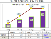 [산업경제뉴스 김소산 기자] 하나은행이 합병 3년 만에 영업이익을 9배 확대시켰다. 이로 인해 이익잉여금은 57%가 늘어났고 총자산도 매년 늘려가 3년 새 15.6% 증가하며 승승장구를 이어가고 있다. 하나은행은 지난달, 2018년도 총자산 326조원, 영업이익(별도기준) 2.7조원 등 지난해 재무자료를 공시했다. 이는 전년 대비 각각 6.0%씩 증가한 실적이다. 하나은행의 영업이익은 지난 수년간 지속된 성장을 거듭해 왔으나, 지난해 당기순익 (1.9조원)은 전년보다 약 1백억 원 줄어든 보합수준으로 마감됐다. 이에 대해 하나은행은 자회사 길림은행(지분보유 16.98%)의 지난해 지분법이익이 전년보다 76.2% 급감한 195억 원에 그치는 등 관계회사 수익감소가 타격을 입혔다고 설명했다. 하나은행은 2015년 9월, 외환은행과 합병하면서 기타영업부문 손실액(3581억)과 판매관리비 증가액(약 1조원) 등 비용 반영으로 직전년도 보다 영업이익이 약 2천억 원 줄어든 2985억 원으로 합병 첫 해를 시작했다. 하지만, 합병직전년도 대출금 규모도 71조원에 불과하던 하나은행이 합병하던 2015년도 201조원 → 2016년 206조원 →2017년 215조원 →201