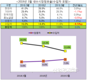 [산업경제뉴스 김소산 기자] 현대자동차, 기아자동차, 한국지엠, 르노삼성자동차, 쌍용자동차로 대표되는 국내 완성차 5사의 1분기 판매량은 지난해 1분기보다 2.8% 감소하며 마이너스 성장하는 모습을 보였다. 국내 완성차 5사가 최근 발표한 실적을 집계해 보면, 지난 3월 총 판매량은 70만2159대로 지난해 같은 달 72만43대보다 2.5% 줄어들었다. 이에 따라 이들 5사의 1~3월 실적은 3개월 동안 계속 줄어들어 1분기 전체 실적도 지난해 같은 기간보다 2.8% 역성장했다. 분기실적을 부문별로 보면, 내수에서 36만59대로 0.8% 증가했지만, 수출을 포함한 해외부문에서는 149만8935대로 3.6% 줄어 전체적으로 부진을 나타냈다. 업체별 증감율은, 쌍용차가 전년 동기 대비 13.7% 증가해 홀로 ‘뜀박질’을 했고, 기아차가 0.6% 강보합세로 다음을 기약했다. 반면, 르노삼성과 한국GM은 지난 3개월 내내 ‘역주행’을 이어가더니 결국, 르노는 –39.6%, 지엠은 -5.0%로 감소실적을 보였다. 내수에서는 쌍용차가 14.1% 증가, 가장 큰 폭의 성장세를 기록했고, 현대차가 8.7% 증가하며 함께 웃었다. 반면, 지난해 10월부터 내수판매 꼴찌를 이