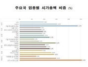[산업경제뉴스 문성희 기자] 국내 상장기업 중 지난 10년 동안 전체 시가총액에서 차지하는 비중이 가장 많이 확대된 산업은 제약·생명공학 산업이다. 2012년에는 전체 시총에서 2.2%를 차지했지만 10년 후인 2022년에는 8.4%를 차지하고 있는 것으로 조사됐다. 전국경제인연합회(이하 전경련)는, 주가가 미래의 기대수익을 반영한다는 것을 전제로, 산업별 시총 변동을 분석해서 해당 산업의 미래가치를 전망한 보고서를 발표했다. 이 보고서에 따르면, 과거 10년 산업별 시가총액 비중의 변화는 제약·생명공학·생명과학이 6.2%p, 미디어·엔터테인먼트가 3.3%p 늘어난 반면, 자동차·부품은 6.0%p, 보험은 2.3%p 줄어들었다. 주력 산업군별 시총 비중 추이 한편 2022년 현재, 국내 상장기업 시가총액 산업별 비중은 기술하드웨어·장비가 23.7%로 가장 큰 것으로 나타났다. 이어 자본재 15.2%, 소재 9.8%, 제약·생명공학·생명과학 8.4%, 미디어·엔터테인먼트 6.0% 순이었다. 주력 산업군별 2022년 시총 비중 한국과 미국, 중국, 일본 등 주요국가의 상장기업 시가총액 비중을 비교한 결과, 대부분 나라가 ‘자본재’, ‘소재’ 등의 비중이 컸다.