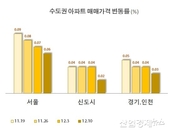[산업경제뉴스 문성희 기자] 정부가 집값을 잡겠다며 추진한 금융·조세 규제가 효과를 내고 있다는 목소리가 나온다. 지난 10월 대출한도축소, 금리인상, 대출조건강화를 시행하자, 지난 7~8년 동안 오르기만 했던 아파트값이 상승세를 줄이면서 박스권을 형성하고 있었는데, 최근 크게 오른 종부세가 고지되면서 상승률이 급속하게 감소하고 있기 때문이다. 하지만 이런 가운데도 대선후보들이 여야를 막론하고 민간을 통한 공급확대 정책을 제시하면서 재건축·재개발 대상 아파트들은 여전히 오름세가 커지는 모습을 보이고 있다. 매주 수도권 아파트가격을 조사하고 있는 부동산114의 수도권 아파트가격 데이터를 살펴보면, 최근 한 달 동안 서울 아파트의 주간상승률은 0.09%에서 0.06%로 감소했다. 신도시도 0.04%에서 0.02%로 감소했고 경기인천지역도 0.05%에서 0.03%로 감소하면서 신도시와 경기인천지역은 사실상 상승세가 거의 멈춘 모습이다. 이러한 추세는 지난 10월부터 시작된 것으로 분석된다. 지난 10월 첫째주만해도 서울의 주간상승률은 0.12%, 신도시는 0.09%, 경기인천은 0.10%로 지난주 상승률의 2~4배에 달하는 등 높은 상승세를 보이고 있었다. 10월