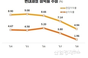 [엔트로피타임즈 문성희 기자] 현대제철이 지난 주말 2018년 잠정 연간실적을 공시했다. 매출은 전년보다 8.4% 늘어나 양호한 상승세를 보였지만 영업이익은 25% 감소했고, 회사의 최종 성과인 당기순이익은 44% 감소해 반토막이 났다. 매출은 증가했는데 이익이 감소하다 보니 회사의 수익성을 나타내는 지표인 이익률도 급격히 하락했다. 이러한 수익성 악화를 반영하듯 증권가에서는 올해 1분기 실적도 부진할 것으로 전망하는 보고서가 잇달아 나오고 있다. ■ 매출 20조 7804억원, 영업이익 1조261억원, 당기순이익 4079억원 현대제철이 공시한 2018년 연결기준 잠정 영업실적에 따르면, 회사는 지난 한 해 매출은 20조7804억원을 실현했다. 2017년 19조1659억원보다 8.4% 증가한 실적이다. 현대제철은 고부가 글로벌 자동차 강판과 조선 후판, 내진용 강재 등이 호조를 보이며 매출이 늘어 났다고 설명했다. 하지만 영업이익은 1조261억원을 기록해 2017년 1조3676억원보다 25%가 줄었고 당기순이익은 4079억원을 실현해 전년 7275억원보다 44%가 줄었다. 회사의 실질적인 최종 수익인 당기순이익이 반토막이 났다. 현대제철은 통상임금 판결에 따른