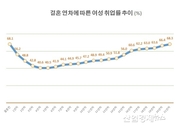 [산업경제뉴스 문성희 기자] 여성은 결혼과 육아로 인해 취업률이 크게 좌우되는 것으로 알려졌는데, 이번에 한국 여성들에게 결혼과 육아가 취업에 끼치는 실질적인 영향을 조사한 자료가 나와 여성계와 재계의 관심이 모이고 있다. 한국경제연구원(이하 한경연)은 '기혼 여성의 경제활동 변화 분석과 시사점'이라는 보고서를 통해 2009년부터 2019년까지 10년 간의 여성 취업률 변화를 분석했다. 이 보고서에 따르면, 최근 10년 간 여성들의 취업률은 미혼여성의 경우 큰 변화가 없는 반면, 기혼여성들은 지속적으로 취업률이 높아지고 있는 추세를 보였다. 우리 사회에 기혼여성의 사회참여도가 높아지고 있다는 것을 의미한다. 또 눈길을 끄는 부분은 결혼 후 20년 차의 기혼여성 취업률이 결혼전 수준으로 높게 나타나서, 기혼여성들이 일정 시간이 지나고 나면 다시 취업전선에 적극적으로 나서고 있다는 것을 보여줬다. 지난 10년 동안 미혼여성의 취업률은 70% 대에서 큰 변화가 없었다. 2009년 73.2%였던 미혼여성 취업률은 2013년에 77.0%까지 증가했지만 2014년부터 다시 감소해 71~72%대에 머무는 등 사실상 큰 변화가 없는 것으로 나타났다. 반면, 기혼여성들의 취