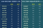 [엔트로피타임즈 문성희 기자] 현대건설과 삼성물산이 해외와 국내에서 각각 1등 건설사로 지명됐지만, 현대건설은 해외수주실적이 급감하고 삼성물산은 매출과 이익이 3, 4위로 밀려서 업계에서는 빛바랜 1 등이라는 평가가 나오고 있다. ■ 현대건설, 해외에서 최고 평가받았지만 해외수주 89% 감소 세계적인 건설전문지 ENR(Engineering News-Records)은 지난달 세계 250대 건설회사를 선정해 발표했다. 2017년 매출실적 등을 기반으로 순위를 매긴 이 평가에서 현대건설은 16위에 랭크되어 우리 건설사 가운데 최고 성적표를 받았다. 현대건설은 지난해에도 14위로 국내 건설사 가운데 가장 높은 순위를 기록했다. 삼성물산이 23위로 국내 건설사 가운데에서는 두 번째로 높은 순위를 기록했으며 뒤를 이어 GS건설, 대우건설이 각각 38위, 52위에 랭크됐다. 한국 건설사들은 포스코 건설과 롯데건설, 쌍용건설이 순위가 상승했지만 상위에 랭크된 회사들은 모두 순위가 뒤로 밀렸다. 대신 중국 건설사들이 상위 10개 안에 3개사의 이름을 올렸고 100대 건설사 안에도 작년보다 3개가 늘어난 25개 회사가 진입했다. 중국 건설사들이 한국 건설사를 밀어내고 있는 모