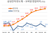 [엔트로피타임즈 문성희 기자] 지난 2년간 분기마다 신기록을 갱신하며 꾸준한 상승세를 보였던 삼성전자 영업실적이 올 2분기에는 매출도 영업이익도 하락세로 전화됐다. 매출은 지난 1분기에 이어 이번 2분기에도 감소했고 영업이익은 7분기만에 감소세로 돌아섰다. 삼성전자는 지난 6일 2018년 2분기 잠정 영업실적을 발표했다. 매출은 58조원으로 지난해 4분기 66조원 이후 두 분기 연속 감소세를 보였다. 전년 동기와 비교해도 4.9% 감소한 실적이다. 영업이익은 14.8조원을 실현해 1분기보다 5.4% 줄었다. 2016년 3분기 5.2조원에서 6분기 연속 상승세를 보이며 신기록을 이어갔지만 7분기 째에는 감소세로 돌아섰다. ■ 반도체 호조에도 불구 스마트폰 부진으로 전체 실적감소 삼성전자가 호조세를 이어갈 수 있었던 것은 반도체 부문의 급속한 성장때문이었다. 하지만 삼성전자 영업의 또 한 축인 스마트폰 사업이 부진을 면치 못하는 등, 부문별 실적차이가 벌어지면서 결국 전체 실적 감소로 이어졌다. 반도체 부문의 영업이익은 2016년 1분기 2.6조원에 그쳤지만 2016년 하반기부터 세계적인 반도체 수요증가에 힘입어 큰 폭으로 증가했다. 이번 2분기에는 12조원(증