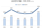 [엔트로피타임즈=문성희 기자] 삼성전자는 지난해 매출 240조원, 영업이익 54조원의 사상 최대 실적을 냈다. 하지만 이러한 실적에 기뻐하며 환호하는 모습을 보기는 좀처럼 쉽지 않다는 게 업계의 전언이다. 회사 안팍에서는 삼성전자가 오히려 깊은 고민에 빠져 있는 분위기라고 귀뜸한다. 업계에서는 삼성전자의 고민에 대해, 무엇보다 지난해 사상 최대 이익을 내게 해 준 반도체가 올해도 그만한 실적을 내줄지 불투명하기 때문이라고 설명한다. 또, 몇년 전만해도 삼성전자의 이익을 대표하던 스마트폰이 좀처럼 하락세에서 벗어나지 못하는 것도 고민이라고 말한다. 이와함께 삼성물산 합병으로 최순실 국정농단 사태와 연루되면서 국내외에 정경유착 기업이라는 딱지가 붙었고 이 일로 추락한 이미지와 신뢰를 회복하는데 많은 노력과 긴 시간이 필요할 것으로 예상되기 때문이라는 목소리도 나온다. ■ 중국 반도체 공세...철강, 조선, 건설의 악몽이 떠오른다 삼성전자의 가장 큰 고민 가운데 하나는 회사 이익의 70%를 차지하는 반도체 시장의 올해 전망이 호락호락하지 않다는 데 있다. 최근 2~3년 반도체 가격이 급등하면서 중국 반도체 업체들은 그동안 막대한 투자를 했왔다. 그리고 올해부터는
