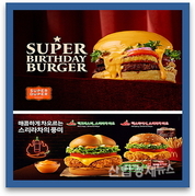 [산업경제뉴스 민경종 기자] 국내 버거시장을 공략 중인 외국계 햄버거 브랜드 맥도날드와 bhc그룹 슈퍼두퍼가 지난 2일 버거와 사이드 메뉴 신제품을 동시에 선보이며 소비자 유치를 위한 한판승부에 돌입했다. 과연 우리 소비자들은 어느 브랜드 메뉴에 더 후한 점수를 줄지 귀추가 주목된다. 먼저 종합외식기업 bhc그룹에서 운영하는 미국계 버거 브랜드 ‘슈퍼두퍼’는 국내 론칭 1주년을 맞아 슈퍼 사이즈로 다양한 맛을 동시에 맛볼 수 있는 ‘슈퍼 벌스데이 버거(Super Birthday Burger)'와 사이드 메뉴 2종을 지난 2일 선보였다. 이 제품은 기념 버거에 걸맞게 가로 지름이 24cm에 달하는 압도적인 크기를 자랑한다. 슈퍼두퍼의 인기 버거 3개를 합친 것과 맞먹는 크기로, 패티 5장을 쌓아 올린 후 깊고 풍부한 맛의 멜팅 치즈 소스가 눈이 내리듯 가득 덮여 먹는 재미와 보는 재미를 느낄 수 있다. 특히 다양한 패티와 토핑으로 데리야끼 버거, 하와이안 버거, 더블 쉬림프 버거를 한 번에 맛볼 수 있는 것이 특징이다. ‘슈퍼 벌스데이 버거’는 1개 수량으로 주문해 3~4명이 함께 즐길 수 있으며 강남점을 비롯해 홍대점, 코엑스 스타필드점에서 매장별 한정 수량