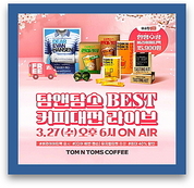 [산업경제뉴스 민혜정 기자] 커피전문점 탐앤탐스가 금일(27일) 오후 6시 3월을 마무리하는 ‘BEST 커피대전’ 네이버 쇼핑라이브를 진행한다고 26일 밝혔다. 이번 ‘BEST 커피대전’에서는 기호에 맞춰 즐기는 다양한 타입의 베스트셀러 커피 제품을 최대 40% 할인받아 구매할 수 있다. 우선 버라이어티 팩 2종은 ‘BEST 커피대전’에서 처음 선보이는 단독한정수량 구성으로, 파우더 스틱 커피와 액상 커피(▲에스프레소 클래식 ▲마일드 블렌드 세트), 핸드드립 커피 4종 테이스팅키트을 보다 저렴한 가격으로 만나볼 수 있다. 특히 버라이어티 팩 포함 5만원 이상 구매 시에는 토니상 6관왕의 빛나는 뮤지컬 ‘디어 에반 핸슨’ 티켓(1인 2매)을 증정한다. 탐앤탐스만의 로스팅 레시피로 과테말라 원두의 밸런스 있는 향미를 극대화한 인스턴트 커피 ▲페니하우스와 드립백을 이용해 각 산지별 최상급 원두를 간단히 내려 마실 수 있는 ▲핸드드립 커피 4종은 개별 구매도 가능하다. 아울러 산뜻한 과일향, 초콜릿의 달콤함, 묵직한 바디감이 어우러진 블렌딩 커피를 한 팩에 담아 휴대가 용이한 ▲아메리카노 파우치(230ml)를 선택할 수도 있다. 이외에도 전 제품 무료배송과 함께