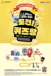 [산업경제뉴스 민혜정 기자] BNK경남은행이 창립 기념일(5월 22일)을 맞아 ‘창립 제53주년 기념 고객감사 이벤트(핫플레이스, 여기는 경남은행!!!)’를 진행한다고 밝혔다. 오는 22일부터 7월 31일까지 ▲퀴즈 이벤트 ▲메타버스 이벤트 ▲인스타그램 이벤트로 나눠 진행되는데, 이중 매주 진행되는 ▲퀴즈 이벤트(도전! 퀴즈왕)는 참여 고객 중 10주간 총 5300명을 추첨해 스타벅스 커피 쿠폰을 보내준다. 또 매주차별 퀴즈 이벤트 참여 고객에게는 최종 경품 추첨에 필요한 추첨권을 1매씩 지급하며 추첨권을 받은 고객을 대상으로 추첨을 통해 여행·쇼핑·영화 등 테마별로 상품권을 제공한다. 먼저 여행 테마 해외여행 부문 당첨자 2명에게는 국민관광상품권 100만원권, 국내여행 부문 당첨자 5명에게는 국민관광상품권 50만원권이, 쇼핑 테마 당첨자 10명에게는 롯데백화점상품권 10만원권, 영화 테마 당첨자 53명에게는 롯데시네마 모바일 영화관람권 2매를 증정한다. 이어 ▲메타버스 이벤트는 메타버스 플랫폼 젭(ZEP)에서 경남은행 창립과 메타버스 '크니버스' 오픈을 기념한, 비밀 금고 찾기를 진행, 응모자 중 300명에게 스타벅스 모바일 커피 쿠폰을 보내준다. 또한 ▲