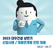 [산업경제뉴스 박진경 기자] 대우건설(대표이사 백정완)이 2023 상반기 신입사원과 인턴사원 공개채용을 진행중이다. 지원기간은 4.1(토)~4.17(월)까지며, 대우건설 채용 홈페이지1) 를 통해서 접수한다. 채용규모는 00명이다. 모집부문은 건축시공, 토목시공, 플랜트시공 등으로 관련 자격증 소지자를 우대하며, 특히 올해는 토목·플랜트 분야 채용을 대폭 확대한다. 오는 4.5(수)~4.13(목)까지 수도권/비수도권 20여개 대학 상담회와 온라인 Job Cafe2) 를 진행할 예정이며, 기타 자세한 사항은 채용 홈페이지에서 확인할 수 있다. 신입사원 전형절차는 서류전형, 필기 및 1·2차 면접전형으로 이루어지며, 최종합격자는 2023년 7월 1일 부로 입사하게 된다. 인턴사원은 신입사원의 전형절차와 동일하나, 여름방학 동안 인턴실습 과정을 통해 실무를 경험하고 2024년 1월 1일부로 입사한다. 대우건설은 최근 5년간 연평균 100명 이상의 신입사원을 선발하며 건설업계에서 가장 활발하게 신입사원 채용을 진행중이다. 이번 상반기 채용에서는 4학년 1학기생들이 지원가능한 채용 연계형 인턴을 도입했는데, 회사의 미래자원이 될 우수한 인재를 조기 선발해 ‘건설 인재