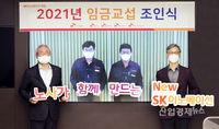 [산업경제뉴스 박진경 기자] SK이노베이션 노사가 올해 임금교섭에서 역대 최단 시간 잠정합의, 역대 최고 투표율/찬성률이라는 새로운 기록을 수립했다. 노사가 매년 진행하고 있는 임금협상 자리에서 ‘세계적인 석유화학 산업 침체와 코로나19로 인한 경영환경 악화’로 인한 위기를 공동으로 협력해 극복하자는 데 뜻을 모은 것이다. SK이노베이션은 지난해 연간 2조5688억원의 영업손실을 내면서 역대 최악의 경영실적을 보여줬다. SK이노베이션 노사는 3일, 서울 서린동 소재 SK빌딩과 SK울산 CLX를 화상으로 연결해 ‘2021년도 임금교섭 조인식’을 가졌다. 조인식은 코로나19 상황을 감안해 전년과 동일하게 비대면 화상회의 방식으로 진행됐다. SK이노베이션 김준 총괄사장, SK에너지 조경목 사장, 이성훈 노동조합위원장 등이 참석했다. SK이노베이션 노사는 2021년 임금교섭을 위해 노사 대표가 처음 만난 지난 2월 16일 상견례에서 역대 최단 시간인 20분만에 잠정합의안을 만들었다. 노사가 만들어 낸 합의안은, 임금인상률을 전년도 소비자물가지수에 연동하기로한 노사간 원칙에 따라 전년도 소비자물가지수인 0.5%로 확정했다. 올해는 2010년 이후 최저 소비자물가지수인