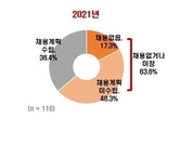 [산업경제뉴스 박진경 기자] 한국경제연구원(원장 권태신, 이하 ‘한경연’)이 여론조사기관 리서치앤리서치에 의뢰하여 매출액 500대 기업을 대상으로 ‘2021년 상반기 신규채용 계획’을 조사한 결과, 대기업 열 곳 중 여섯 곳(63.6%)은 올해 상반기 중 한 명도 채용하지 않거나 아직 채용 계획을 수립하지 못했다고 응답하였다. 신규채용 ‘0’인 기업 비중은 17.3%, 채용계획 미수립 기업 비중은 46.3%이다. 한경연은 ‘신규채용이 없거나 계획 미정’인 기업비중이 전년 동기 보다 크게 높아져, 올해 상반기 신규채용 시장은 더욱 얼어붙을 전망이라고 밝혔다. 2020년 상반기 기준, 대기업 중 신규채용 없는 기업은 8.8%였으며, 채용계획 미수립 기업은 32.5%였다. 올해 상반기 신규채용 계획을 수립한 대기업 비중은 36.4%로, 이 중 채용규모가 작년과 비슷한 기업이 절반(50.0%)이고, 작년보다 채용을 늘리겠다는 기업은 30.0%, 줄이겠다는 기업은 20.0%로 나타났다. 신규채용을 하지 않거나 채용 규모를 늘리지 않겠다고 응답한 기업들은 그 이유에 대해, 국내외 경제 및 업종 경기 부진(51.1%), 고용경직성(12.8%), 필요직무 적합 인재 확보