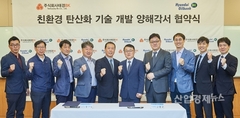 [산업경제뉴스 박진경 기자] 현대오일뱅크는 최근 경기도 용인시 중앙기술연구원에서 태경비케이와 탄산칼슘 제조기술 상용화를 위한 업무협약(MOU)을 체결했다고 10일 밝혔다. 양 사는 원유 정제과정에서 발생하는 온실가스와 부산물로 탄산칼슘을 제조하는 친환경 기술을 세계 최초로 상용화할 계획이다. 탄산칼슘은 시멘트 등 건축자재와 종이, 플라스틱, 유리 등의 원료로 폭넓게 사용되는 기초 소재다. 태경비케이는 국내 대표 석회제조사로 온실가스를 활용한 탄산칼슘 제조 기술을 보유하고 있다. 현대오일뱅크는 태경비케이와 기술협력을 통해 올해 안에 파일럿테스트와 공정설계를 마무리 짓고 2021년 하반기까지 300억 원을 투자, 기존 대산 공장 내 연산 60만 톤 규모의 탄산칼슘 생산공정을 완공할 계획이다. 제품 판매와 온실가스 저감으로 영업이익은 연간 100억 원 개선될 것으로 예상된다. 높은 경제성과 함께 정유업계의 골칫거리인 온실가스를 제품화하는 최초의 친환경기술이라는 점도 눈길을 끈다. 석유 및 석유화학 제품은 우리 실생활에 꼭 필요하지만 생산과정에서 많은 온실가스가 배출된다. 그간 정유사들은 태양광이나 LNG 발전설비를 도입하는 등 공정에서 배출되는 온실가스를 줄이는데