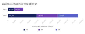 [산업경제뉴스 손영남 기자] 지금은 바야흐로 인공지능의 시대다. 인간의 영역을 앗아간다는 공포감마저 불러일으킬 만큼 인공지능(AI)이 산업 전반에 혁신을 불러오고 있다. 응당 이뤄져야 할 시대적 흐름이라는 인식이 지배적이지만 그로 인한 불안감이 없는 것은 아니다. 또 다른 시대의 한 축인 탄소중립과의 불협화음이 그것이다. 압도적인 능력에 비례하는 대규모 전력 사용, 그리고 그로 인한 탄소 배출 문제가 인공지능 산업계의 고민거리로 등장하고 있다. 특히 대형 언어모델과 생성형 AI의 확산은 데이터센터의 전력 소비를 급증시키며, 탄소중립 목표에 역행하는 결과를 낳고 있다는 지적이다. ◆ AI 확산과 함께 온실가스 배출량 급증 AI가 전기 먹는 하마라는 사실은 널리 알려져 있다. 이는 AI 기술에 필수적인 데이터센터의 전력 소비량만 봐도 알 수 있다. 구글의 2023년 데이터센터 전력소비량은 전년 대비 17% 증가했으며, 총 3.5TWh(테라와트시)에 달했다. 이는 중소도시 전체가 1년간 사용하는 전력량에 맞먹는 수준이다. 당연한 귀결이다. 데이터센터는 AI 연산을 처리하는 고성능 GPU를 운영하며, 이 과정에서 발생하는 발열을 식히기 위한 냉각 시스템에 추가적인