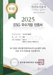 [산업경제뉴스 손영남 기자] 안산도시공사는 한국평가데이터가 실시한 ESG 기업평가에서 ‘ESG-2등급’을 획득하며 우수기업으로 선정됐다고 11일 밝혔다. 이번 평가는 ESG(환경·사회·지배구조) 경영 실천을 위해 마련됐으며, 환경(E)·사회(S)·지배구조(G) 각 부문별로 정량·정성 지표를 통해 진행됐다. 공공기관으로서의 ESG 경영 이행수준을 대외적으로 인증 받은 안산도시공사는 평가 결과를 바탕으로 ESG 경영 체계를 고도화하기 위한 중장기 실행계획을 수립할 계획이다. 환경 부문에서는 온실가스 및 용수 등 주요 환경지표 감축 목표를 설정하고 지속적인 모니터링 체계를 강화할 계획이다. 사회 부문에서는 근로 환경 및 제도 개선을 통해 ‘일하기 좋은 조직 문화’를 조성하고, 그 성과가 현장에 정착되도록 후속 조치를 마련할 방침이다. 아울러 지배구조 부문에서는 ESG 정보공시 확대 등을 통해 공정하고 신뢰받는 조직 기반을 강화해 나갈 예정이다. 또 올 하반기에 ESG 경영성과를 체계적으로 담은 지속가능경영보고서를 발간해 ESG 추진 성과와 향후 전략을 시민과 투명하게 공유한다. 허숭 안산도시공사 사장은 “이번 평가는 우리 공사의 ESG 경영 수준을 객관적으로 진단